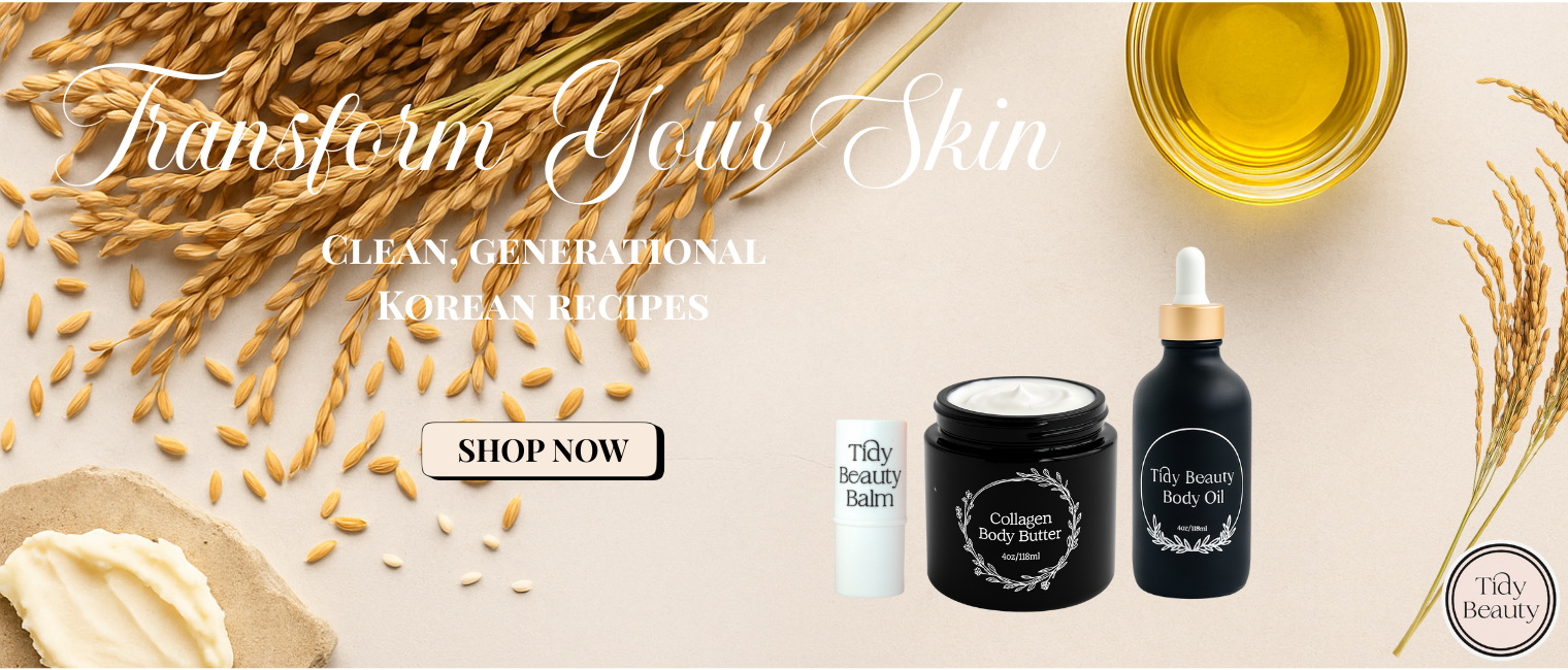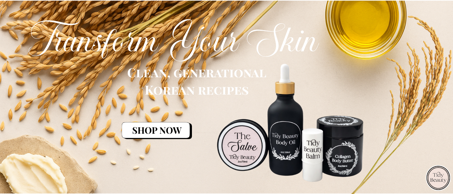 Tidy Beauty is a small-batch, organic Korean skincare brand rooted in the timeless rituals of generations past. Crafted in Southern California, our formulas blend nature’s purest ingredients with modern science to deliver gentle, effective, and glow-boosting results. Inspired by the legacy of Korean beauty, we create clean skincare that nourishes deeply, performs powerfully, and honors your skin—without compromise.